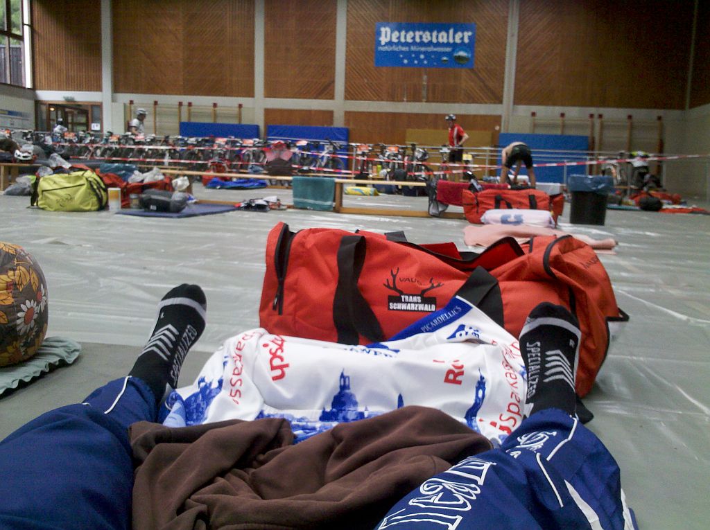 Abendessen (Nudel- und Salatbar – sehr gut), Rothaus trinken, Siegerehrung und Etappenvorschau anschauen, Gedanken zur morgigen Etappe machen, Rothaus trinken, Etappenprofil prüfen, Entspannen, Schlafen … Aufwachen ...